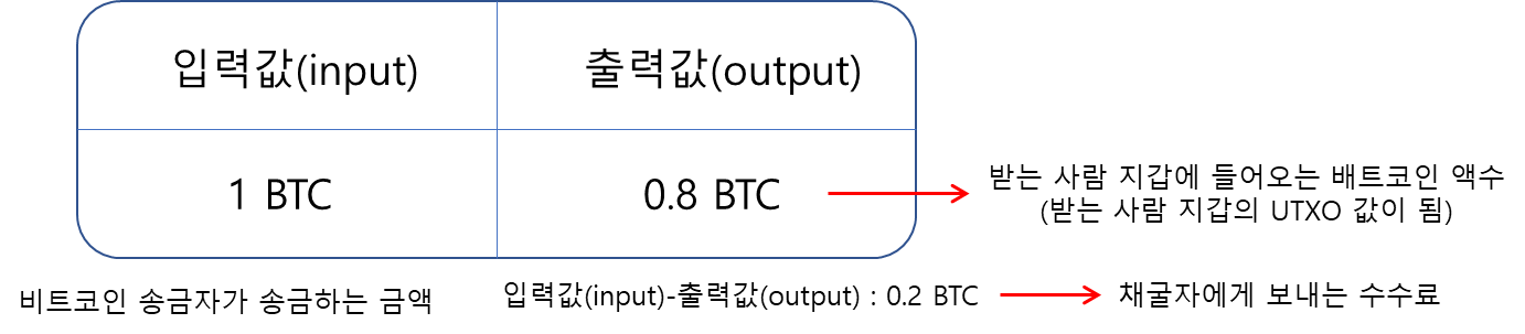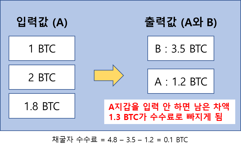 비트코인을 송금하는 과정은 일반적인 은행계좌에서 돈을 출금하는 것과는 다릅니다. 우선 입력값과 출력값이 있는데, 입력값 – 출력값은 수수료로 자동 책정되니 주의해야 합니다.