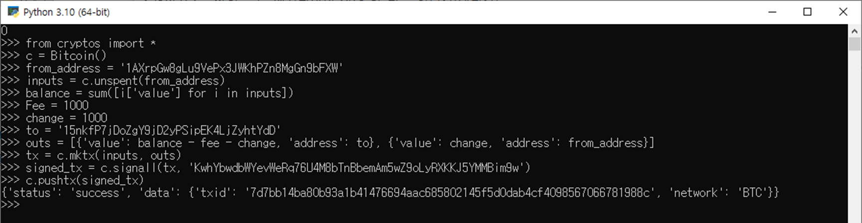 파이썬으로 개인지갑 비트코인 송금하는 방법 [코드]